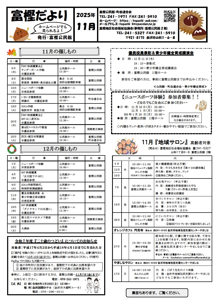 2025年10月28日 / 最終更新日 : 2025年10月28日 富樫公民館 富 樫 だ よ り 富樫だより11月号 発行 富樫だより11月号(PDF版) 総閲覧数: 7 , 今日: 7 Facebooktwitter
